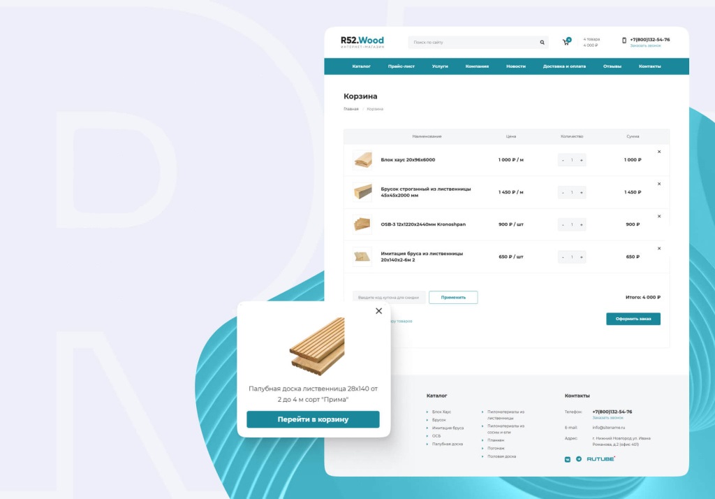 Удобная корзина и быстрое оформление товаров и подразделов настроен вывод SEO-текстов